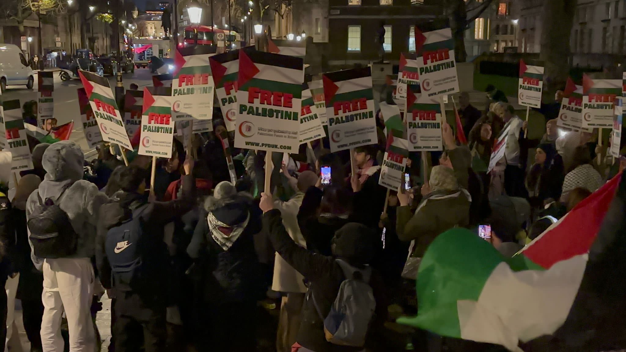 أمام مكتب ريشي سوناك، دعا إليه التحالف المؤيد لفلسطين في
